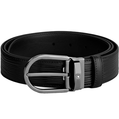 Черный кожаный ремень с подковообразной пряжкой 35мм от магазина премиальных ручек Premium Pens в Первоуральске.