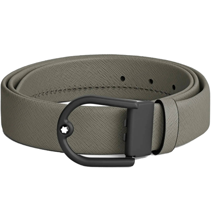 Кожаный ремень 35 мм из кожи серого цвета, пряжка в форме подковы от магазина премиальных ручек Premium Pens в Первоуральске.