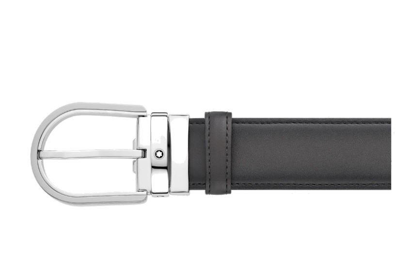 Кожаный ремень с пряжкой в форме подковы серого цвета 35 мм от магазина премиальных ручек Premium Pens в Первоуральске.